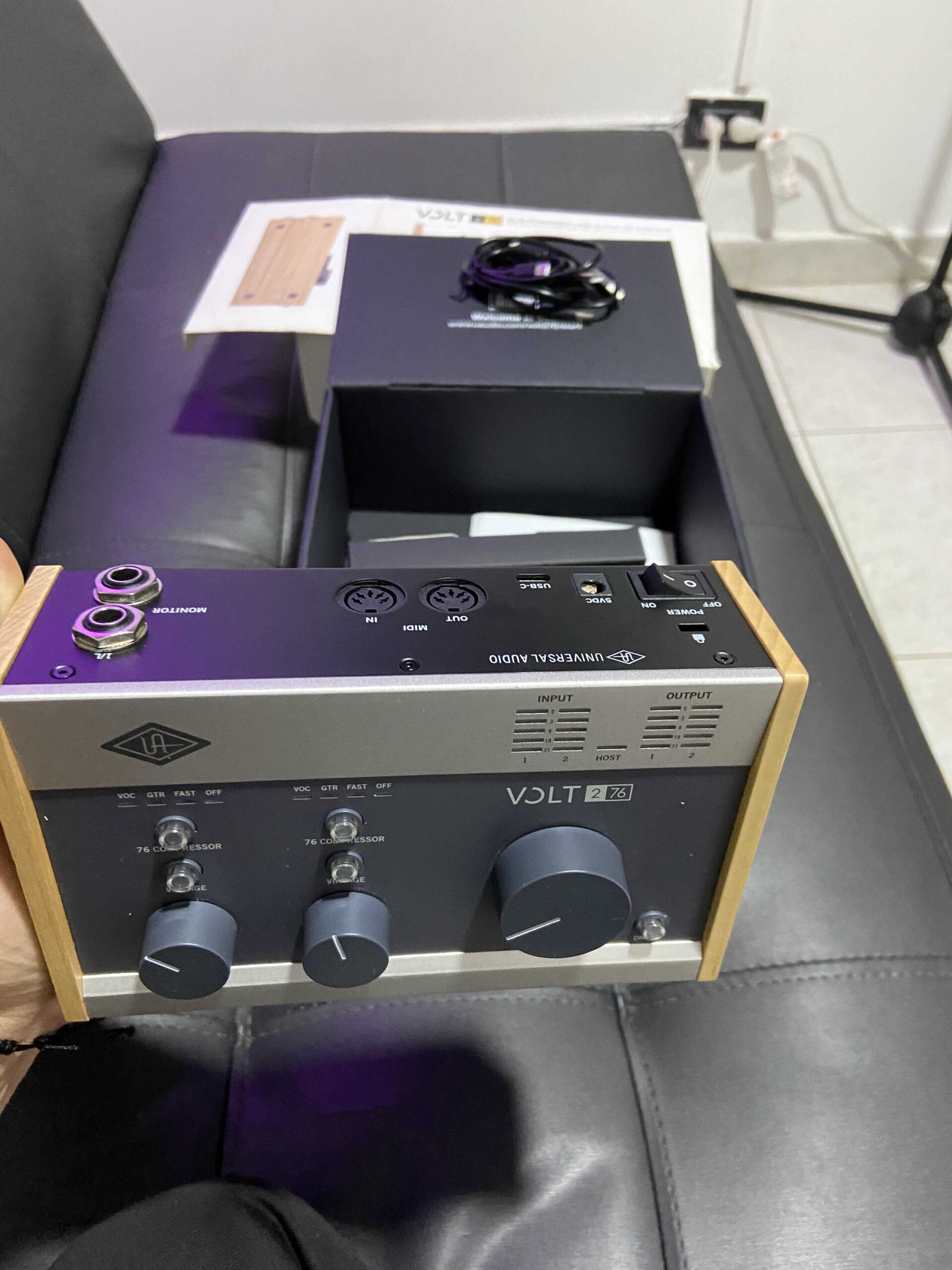 La interfaz de audio USB Universal Audio Volt 276 es una interfaz de 2 entradas/2 salidas que ofrece un enorme nivel de funcionalidad y rendimiento en un paquete compacto e intuitivo. Con la mejor fidelidad de audio de su clase a través de un procesamiento de 24 bits y una frecuencia de muestreo de 192 kHz, la Volt 276 USB capturará cada detalle de su actuación con inmenso detalle. Se presenta un circuito compresor analógico integrado estilo 1176 para añadir punch y peso a sus pistas en la etapa de entrada, lo que le permite aligerar la carga de la CPU de su ordenador procesando sus pistas antes de grabarlas en su DAW. La interfaz portátil definitiva para grabar voces, la Volt 276 USB incluye un modo de preamplificador de micrófono Vintage, tomado de un preamplificador de válvulas vintage UA 610 que esculpe y da forma suavemente a su tono para añadir calidez y una sutil saturación a sus grabaciones vocales. Prepárese para el álbum en un solo lugar con Volt 276.